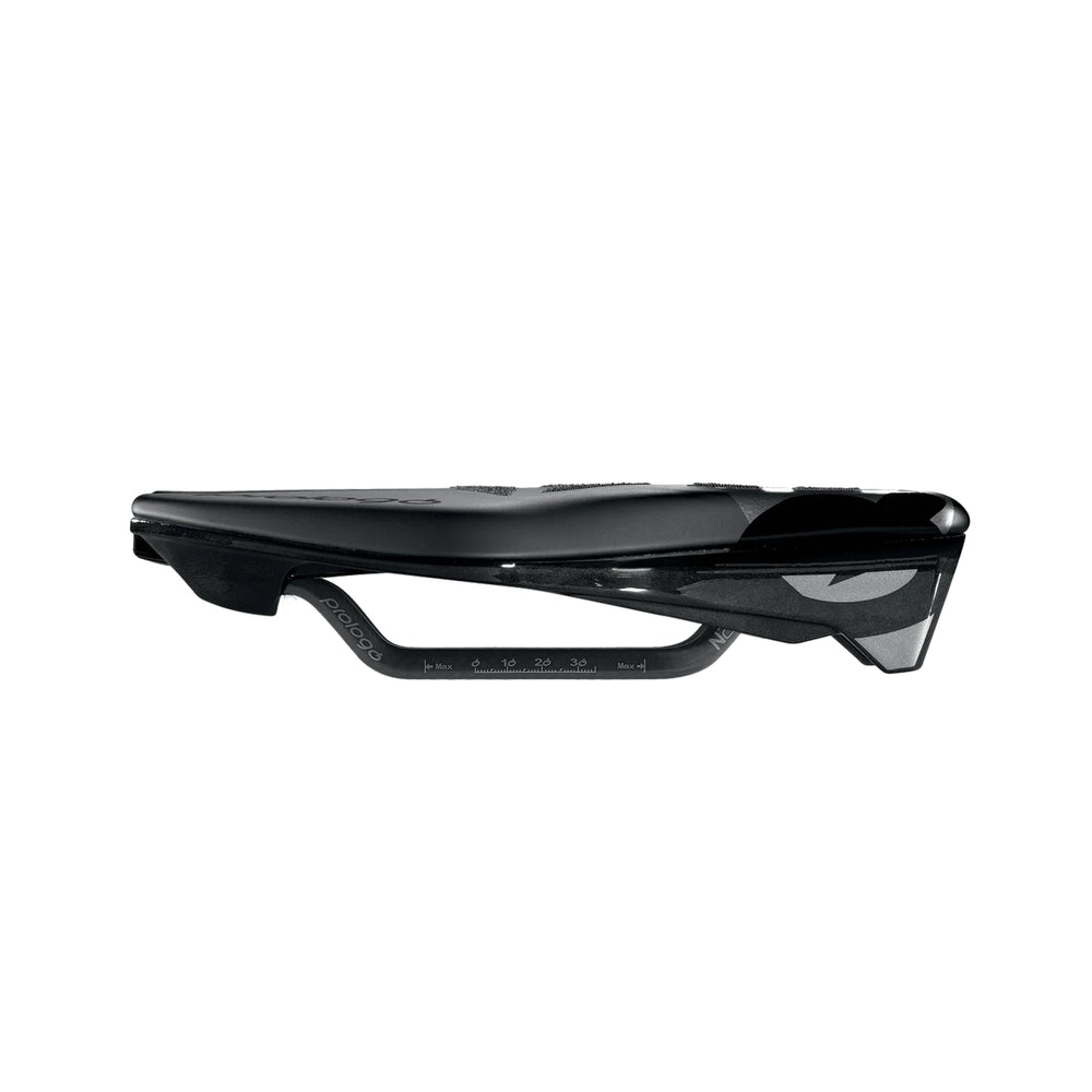 Tested in the wind tunnel, this saddle has highly technological features and an unique design. The nose is 4,5cm shorter than a normal saddle. An integrated Elastomer absorbs vibrations and shocks. It is perfect for the rider to exert maximum power in aerodynamic positions over a long time. CPC: Connect, Power Control: Prologo patented technology, the specially designed CPC surface features 3D polymer volcanoes arranged for maximum benefit. This includes optimum grip, shock absorption, and air cooling.