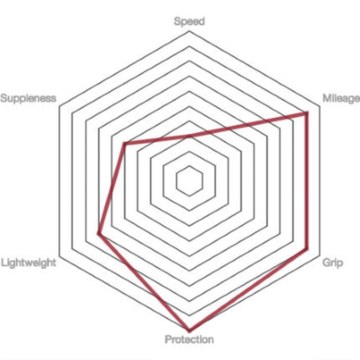 3C Compound: Vittoria 3C is a layering process, which utilises three separate compound layers in the same tread. The unique properties of each compound that include Graphene provide enhanced performance in all areas, most notably mileage, puncture protection and grip.