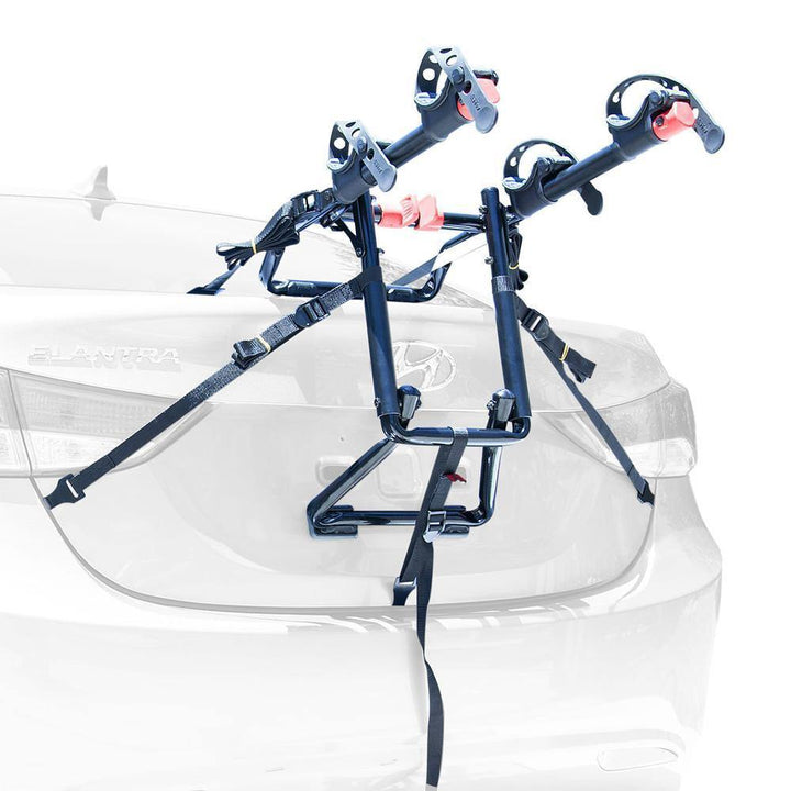 The Allen Sports S-102 Premier Two Bike Carrier fits sedans, hatchbacks, minivans and SUV's (make sure to confirm specific vehicle fit above). Its patented design sets up in seconds and will safely transport your bicycles around town or cross country. Two side straps deliver exceptional lateral stability on your vehicle. A patented tie-down system individually secures and protects your bicycles.